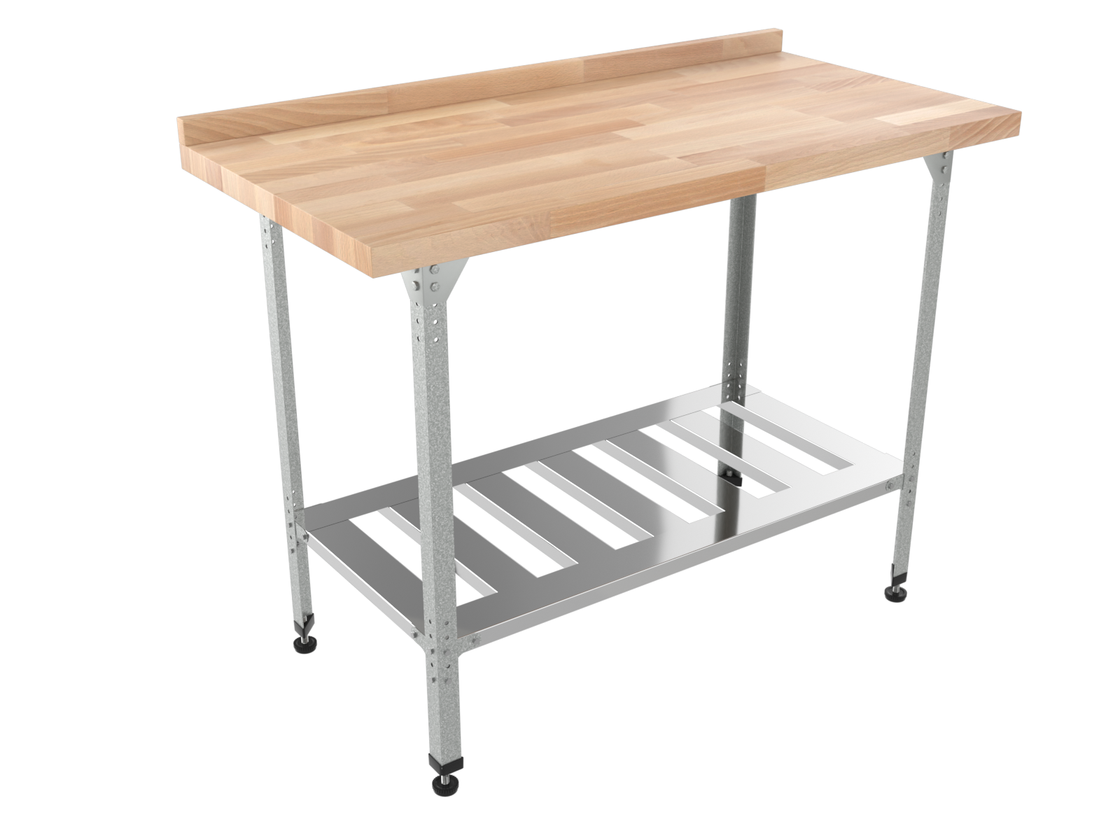 Столешница срощенный мебельный щит 40 мм из бука, каркас и полка нержавеющая сталь 1,5 мм