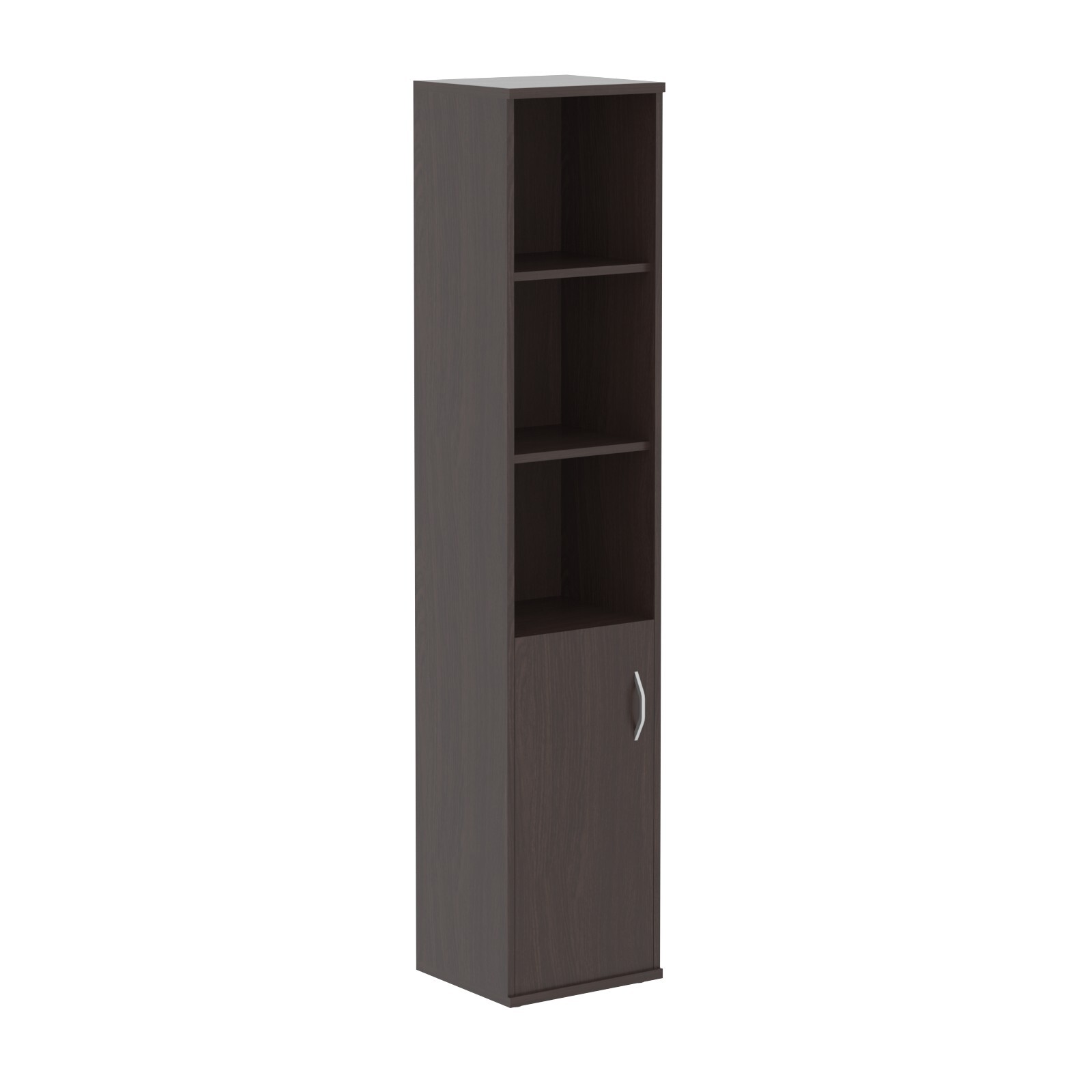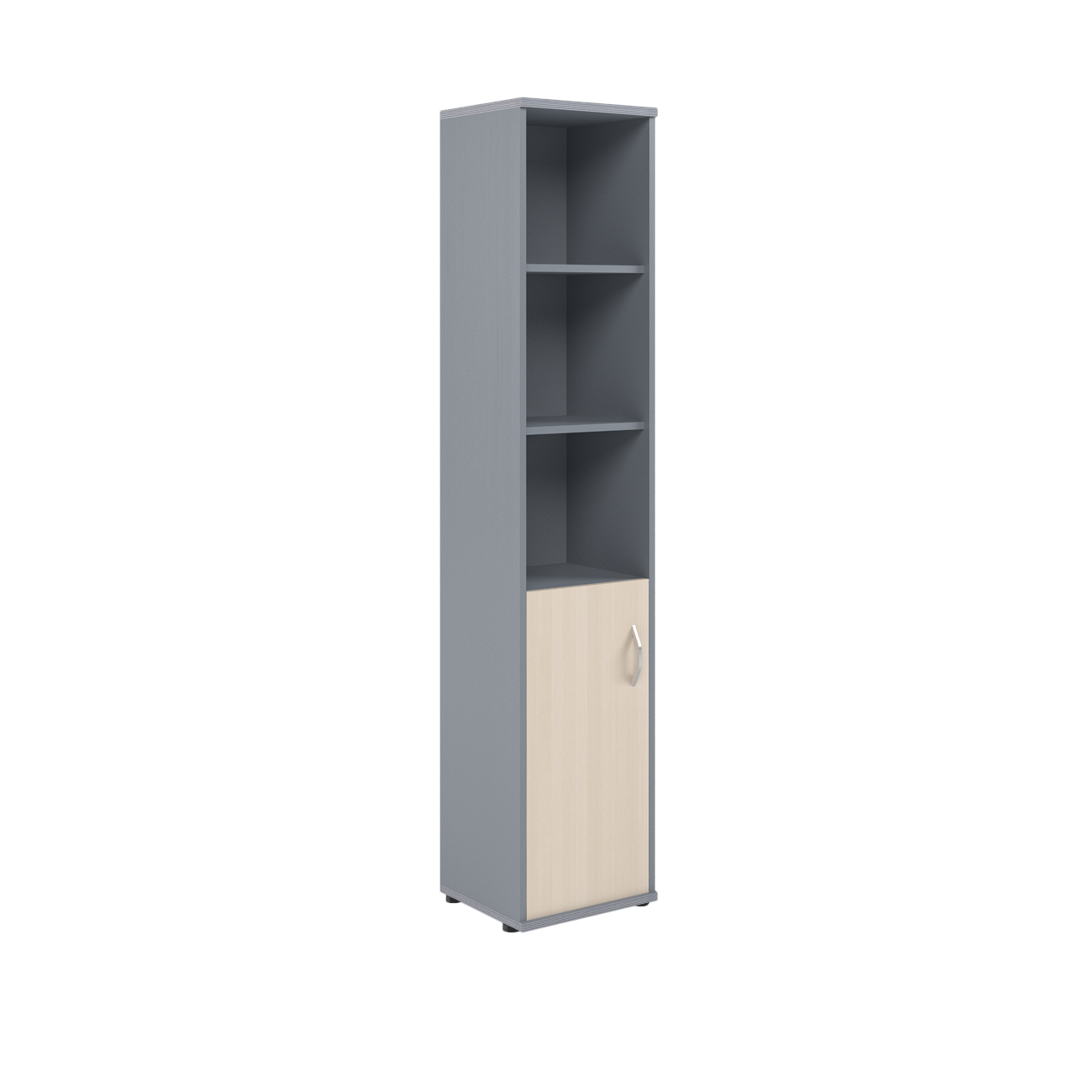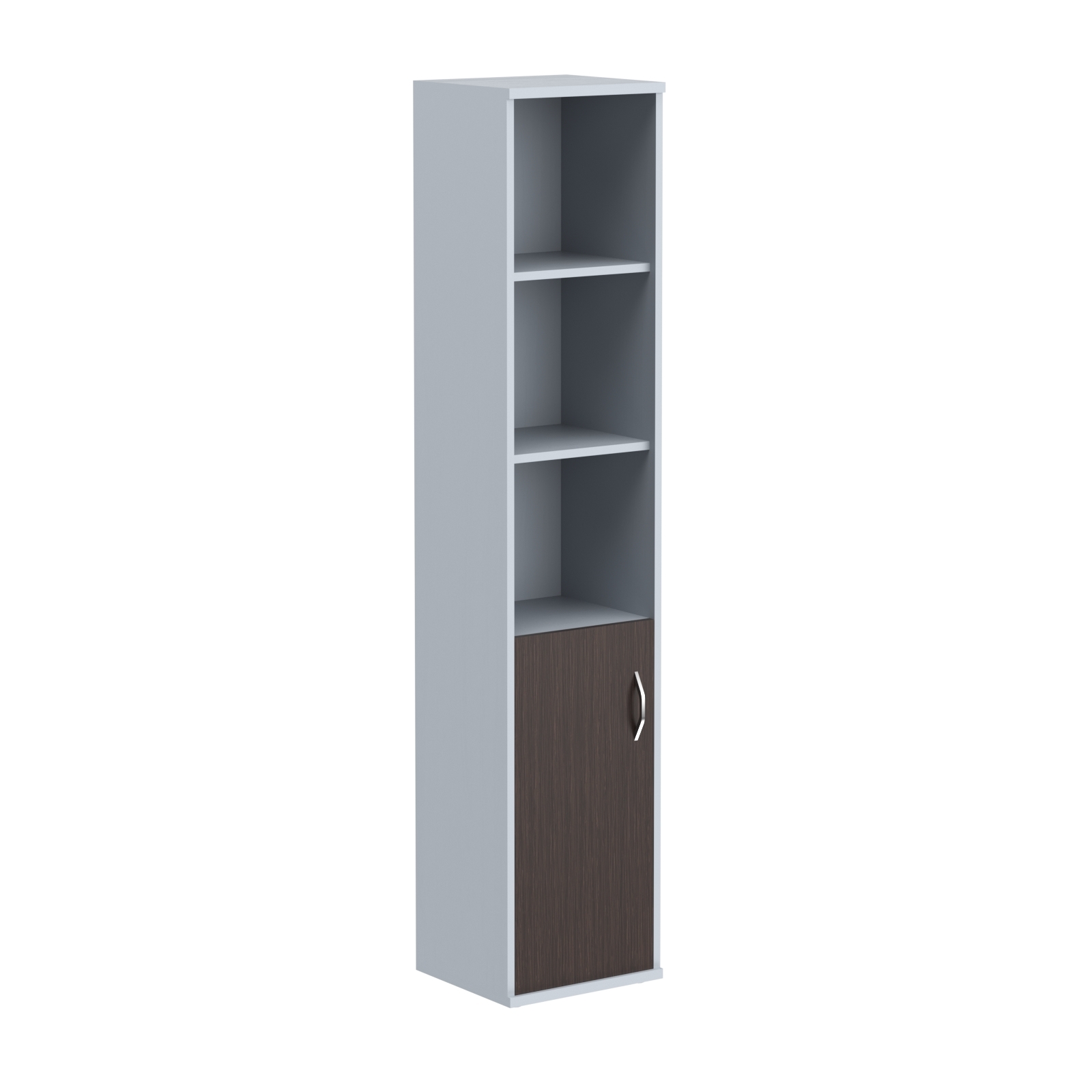 Универсальный шкаф-стеллаж левый IMAGO для офисного или домашнего использования. Размеры - 406х1975х365 мм. Оснащен 5 полками, две нижние закрывает дверца из ЛДСП, три верхние - открытые. Шкаф оснащен регулируемыми опорами для компенсации неровностей пола.