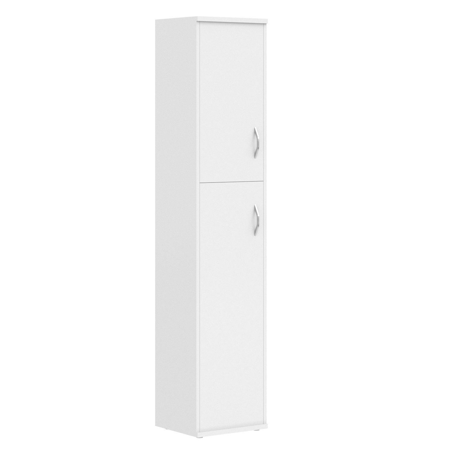Компактный и высокий шкаф IMAGO для офисного или домашнего использования. Размеры - 406х1975х365 мм, тип – левосторонний. Оснащен 5 просторными полочками, 3 нижние и 2 верхние отдельно закрываются дверцами из ЛДСП под цвет шкафа. На дверцах установлены стильные металлические ручки. Конструкция оснащена прочными силовыми креплениями – эксцентриковыми стяжками. Все торцы основных элементов шкафа надежно защищены кромкой ПВХ – 2 мм. Регулируемые по высоте опоры обеспечат устойчивость на неровном полу.