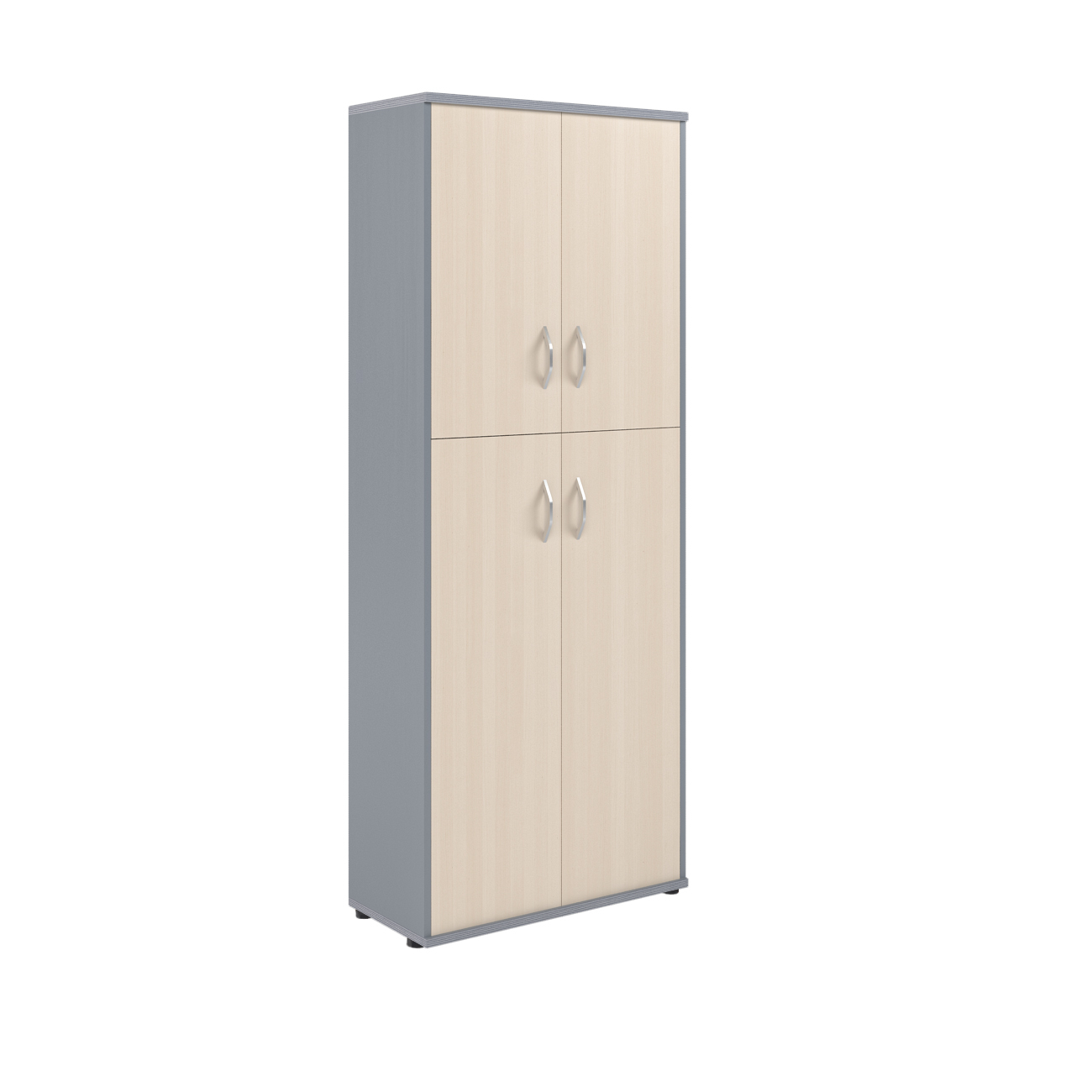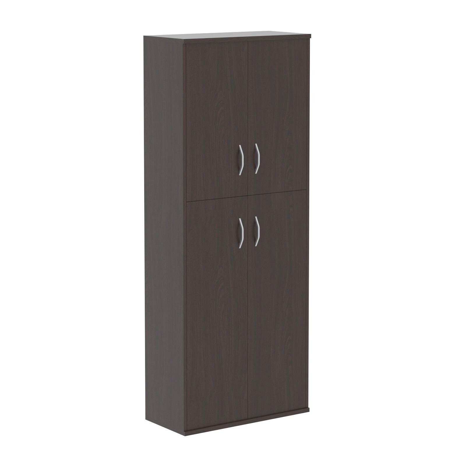 Универсальный высокий шкаф IMAGO для офисного или домашнего использования. Размеры - 770х1975х365 мм. Оснащен 5 просторными полочками, 3 нижние и 2 верхние отдельно закрываются дверцами из ЛДСП под цвет шкафа. На всех дверцах установлены стильные металлические ручки. Конструкция оснащена прочными силовыми креплениями – эксцентриковыми стяжками. Все торцы основных элементов шкафа надежно защищены кромкой ПВХ – 2 мм. Регулируемые по высоте опоры обеспечат устойчивость на неровном полу.