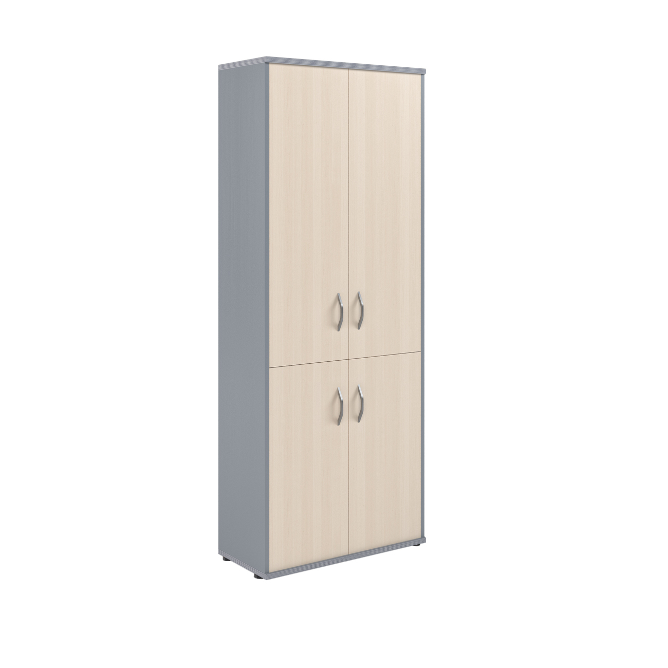 Широкий и высокий шкаф IMAGO для офисного или домашнего использования. Размеры - 770х1975х365 мм. Двустворчатый шкаф, для удобства дверцы из ЛДСП разделены на две секции, которые отдельно закрывают три верхние и две нижние полки. Шкаф оснащен регулируемыми опорами для компенсации неровностей пола.