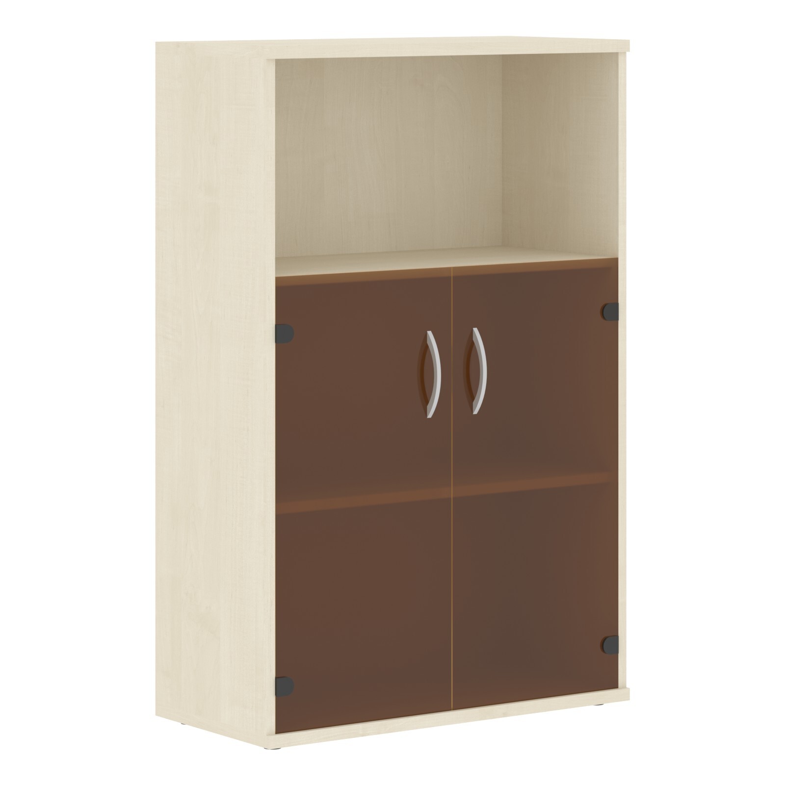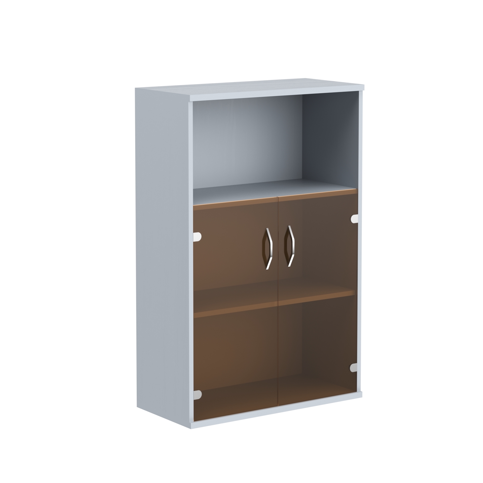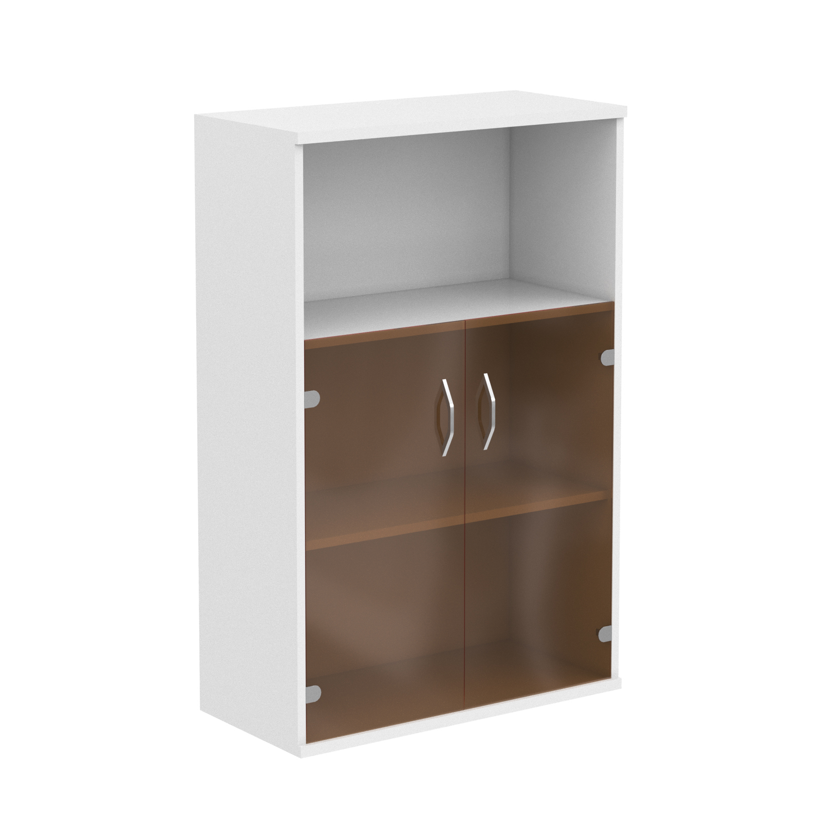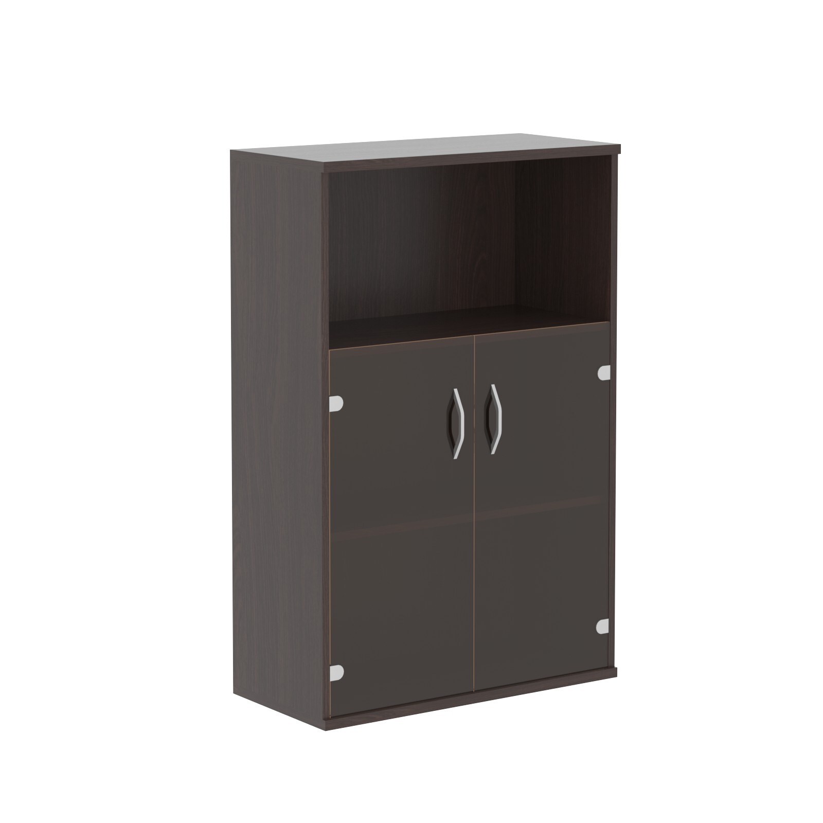 Универсальный средний шкаф IMAGO для офисного или домашнего использования. Размеры - 770х1200х365 мм. Оснащен 3 просторными полочками, 2 нижние закрываются стеклянными дверцами. На дверцах установлены стильные металлические ручки. Конструкция оснащена прочными силовыми креплениями – эксцентриковыми стяжками. Все торцы основных элементов шкафа надежно защищены кромкой ПВХ – 2 мм. Регулируемые по высоте опоры обеспечат устойчивость на неровном полу.