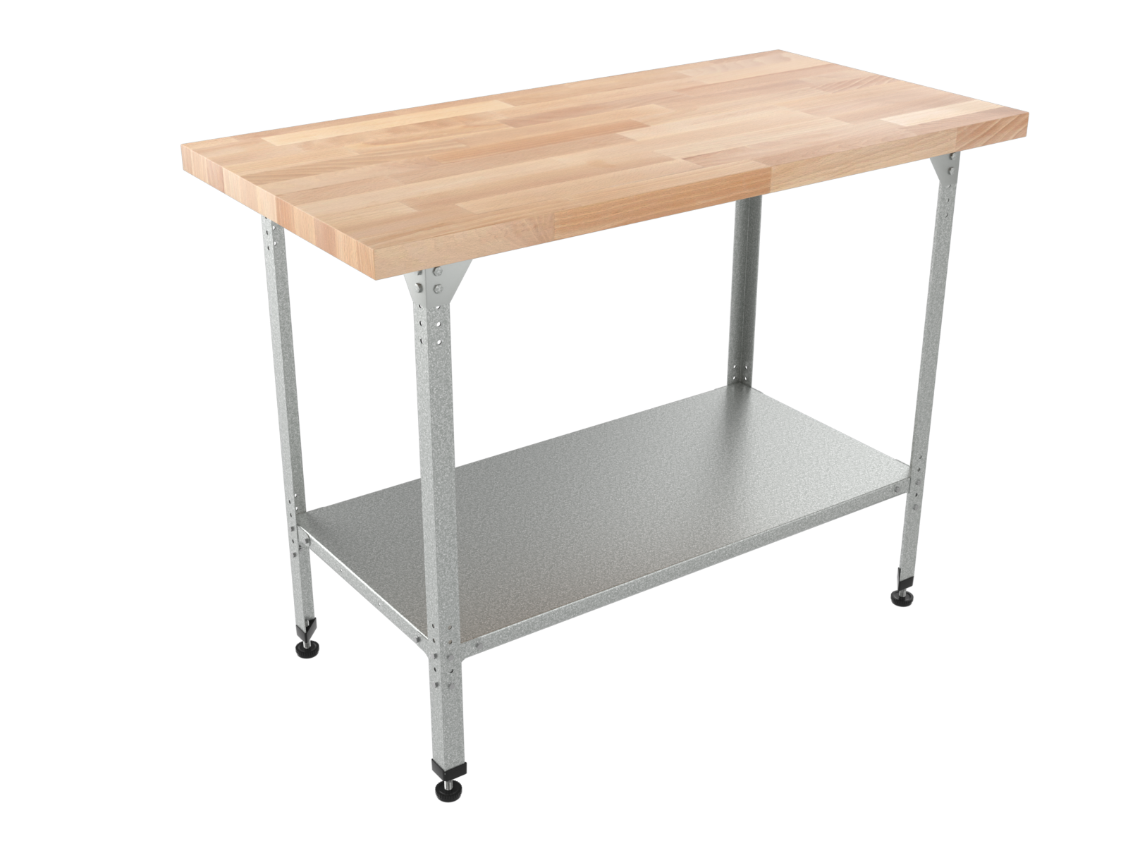 Столешница срощенный мебельный щит 40 мм из березы, каркас и полка оцинкованная сталь 1,5 мм